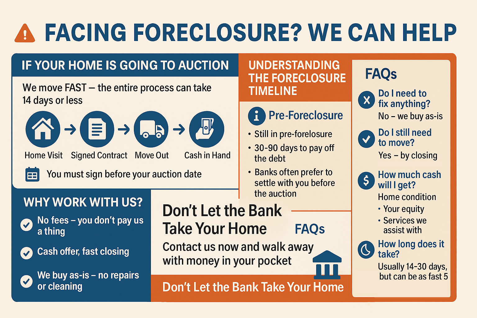 Foreclosure happens when the bank has exhausted efforts to resolve missed payments and takes legal ownership of the home. If action isn’t taken before the auction date, the property is sold to the highest bidder—often with little or no financial benefit to the homeowner.